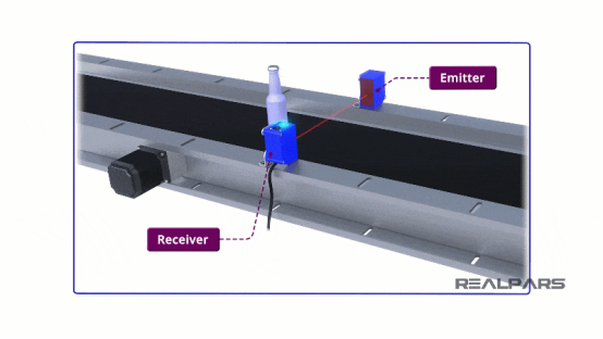 Txhawm rau kom dhau-Beam sensor ua haujlwm, lub emitter thiab receiver yuav tsum tau taw qhia ntawm ib leeg thiab ua raws.